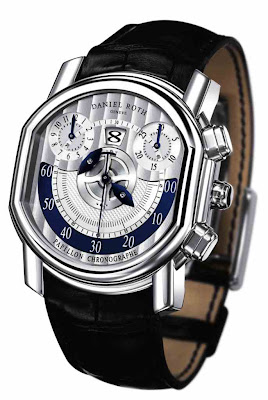 Der Papillon Chronograph auf den Punkt gebracht: Mechanisches Uhrwerk von Frédéric Piguet mit Säulenrad-Chronographen, vollständig von Daniel Roth bearbeitet und mit zusätzlichen proprietären Komplikationsmodulen angereichert. Einzigartiger patentierter schwenkbarer doppelter Minutenzeiger, zwei Chronographenzähler und zentraler Chronographenzeiger. Chronograph Sekundenzeiger, der bei 6 Uhr stoppt, um die Lesbarkeit der Springstunden nicht zu beeinträchtigen. Gelbgold-, Weißgold- oder Rotgoldgehäuse, silber- oder rutheniumfarbenes Zifferblatt mit durchsichtigen Zählern und Markierungen. Schwarzes, blaues oder braunes Krokodillederarmband.Bitte sehen uhren replica oder Breitling Uhren